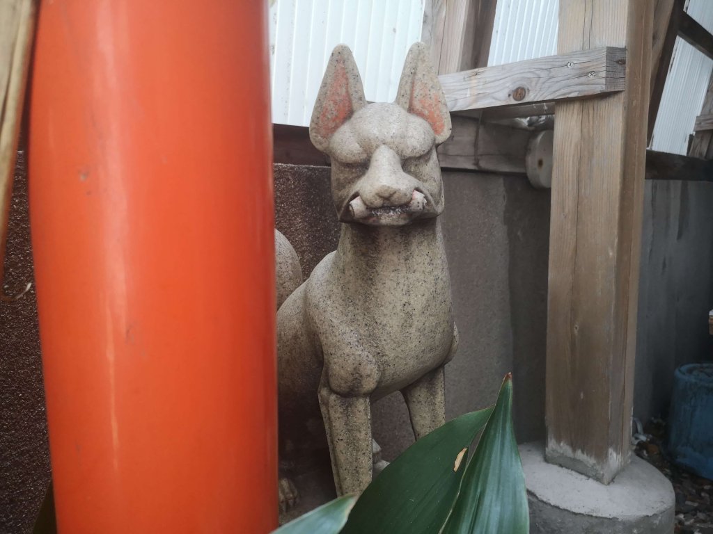 稲荷神社が元々あったから避けて建物が建てられたのか、土地の持ち主が信仰深くてあえて稲荷神社を設けるためにスペースを空けたのか、どちらかは定かではない。