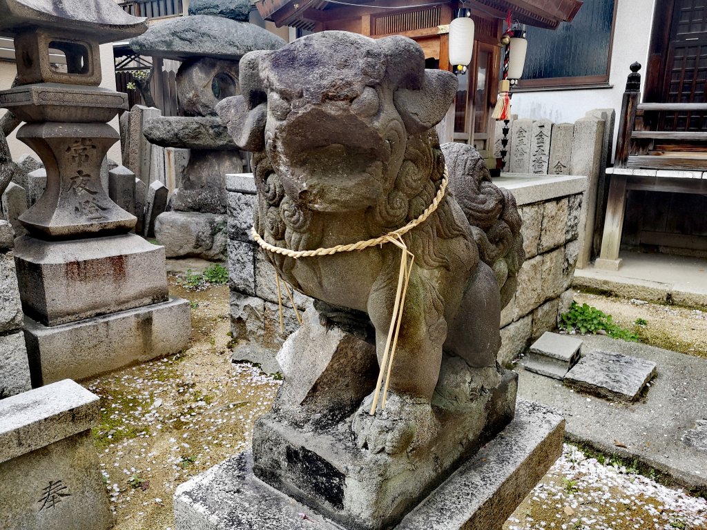 櫻樹神社は稲荷神である倉稲魂神を祀っているが狐ではなく狛犬が鎮座している。