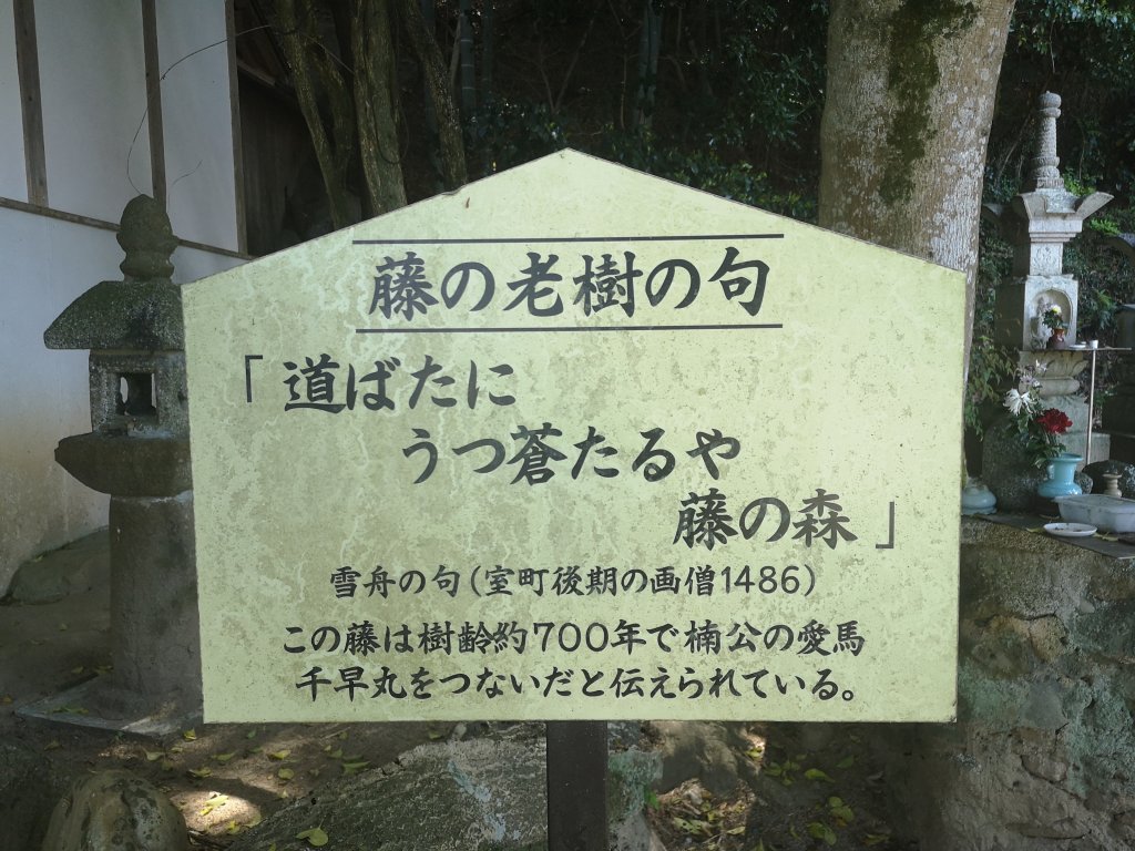 楠木正成はこの藤の木に愛馬、千早丸をつないだとされている。