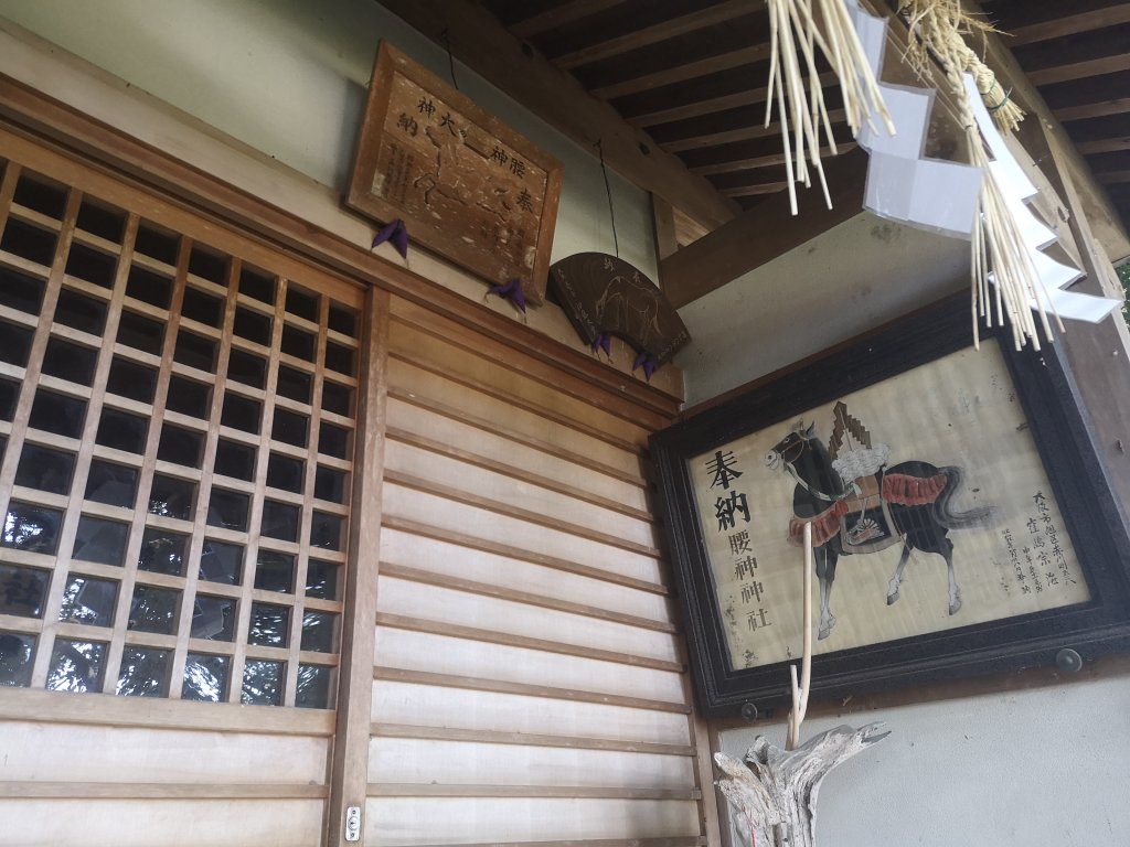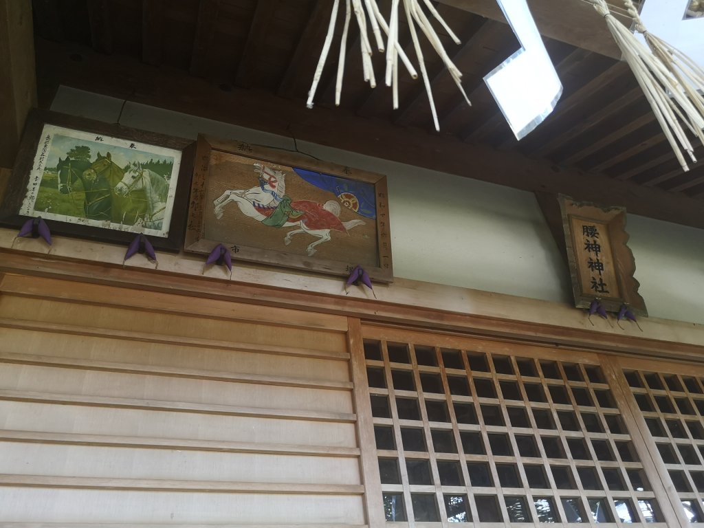 腰神神社にある馬の絵図は、神に腰痛の平癒を祈り、無事に治った人が感謝の印として奉納されたもの。