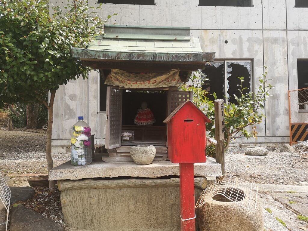 近所の人がお地蔵さんに手を合わせたり、檀家さんなのか信徒さんなのか、みかんやお水が各所に供えてあったり、敷地は荒れに荒れてっていうわけでも無くて今でも信仰している人達が手を入れてくれている。