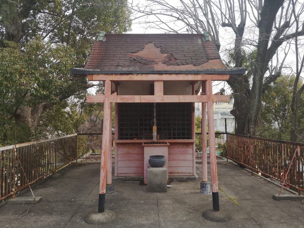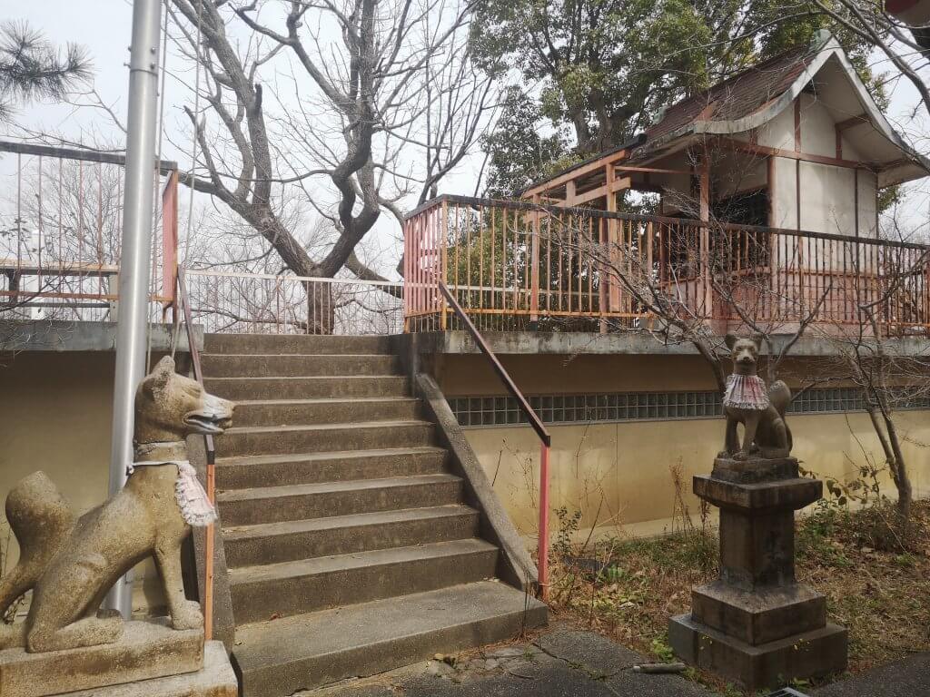 社は老朽化が進み、狐像は1体耳が欠けている。