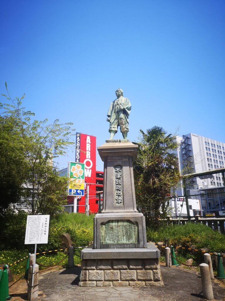 木津勘助(きづかんすけ)は青年の頃より豊臣家に仕え、木津川の開拓工事に尽力し、水運の便と堤防を強化して洪水の害を防ぐなどその功績は高く評価されている。