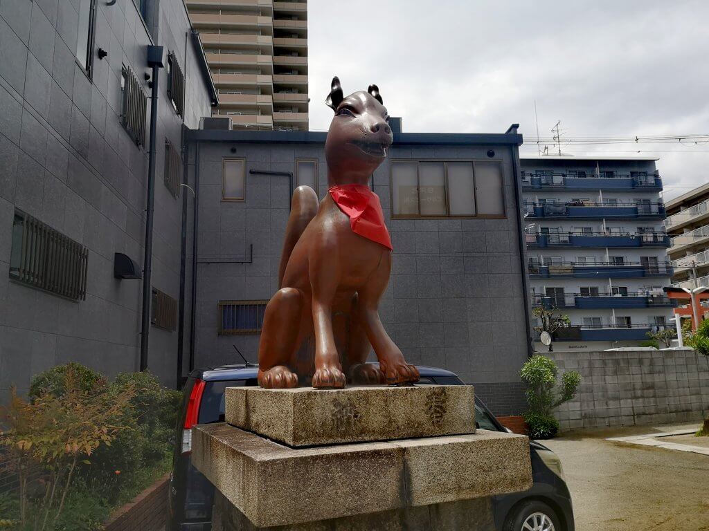 ここの狐像は神社の狐像と違い、独特な見た目をしている。