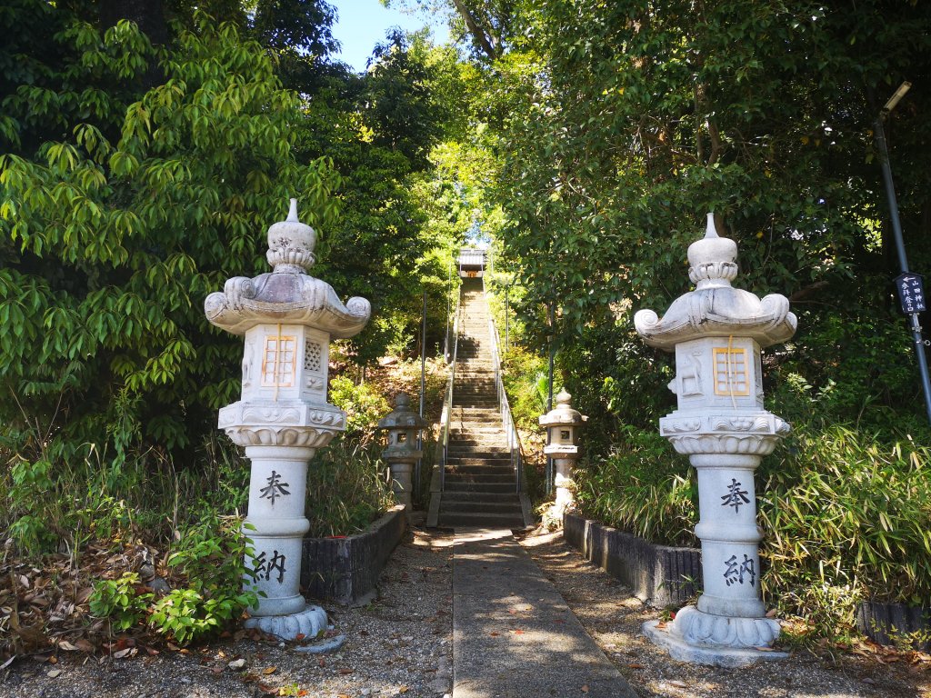 山田神社に行くには階段か、なだらかな坂道のどちらかで行くことができ、バリアフリーなつくりとなっている。